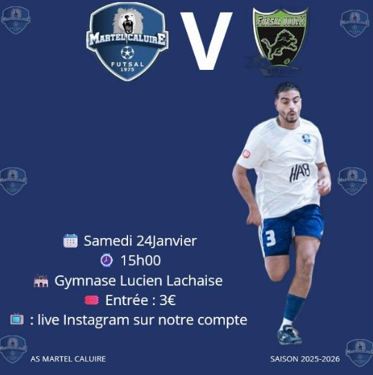 24/01/2026 - 15:00Ajouter au calendrieriCalendar Outlook Google Yahoo SPORT Gymnase Lachaise Caluire et Cuire VS Vaulx en Velin A voir en direct sur la page Instagram de Martel Caluire
