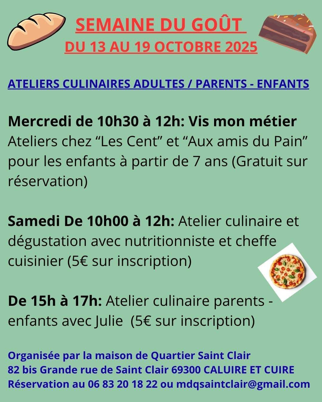 13/10/2025 - 20/10/2025Ajouter au calendrieriCalendar Outlook Google Yahoo ANIMATION 82 bis grande rue de Saint-Clair Conférences, jeux, ateliers culinaires, brunch, dégustations... Plus d'informations sur la page Facebook de l'association