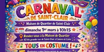 01/0310:15Ajouter au calendrieriCalendar Outlook Google Yahoo ANIMATION CARNAVAL DE SAINT-CLAIR Lire la suite