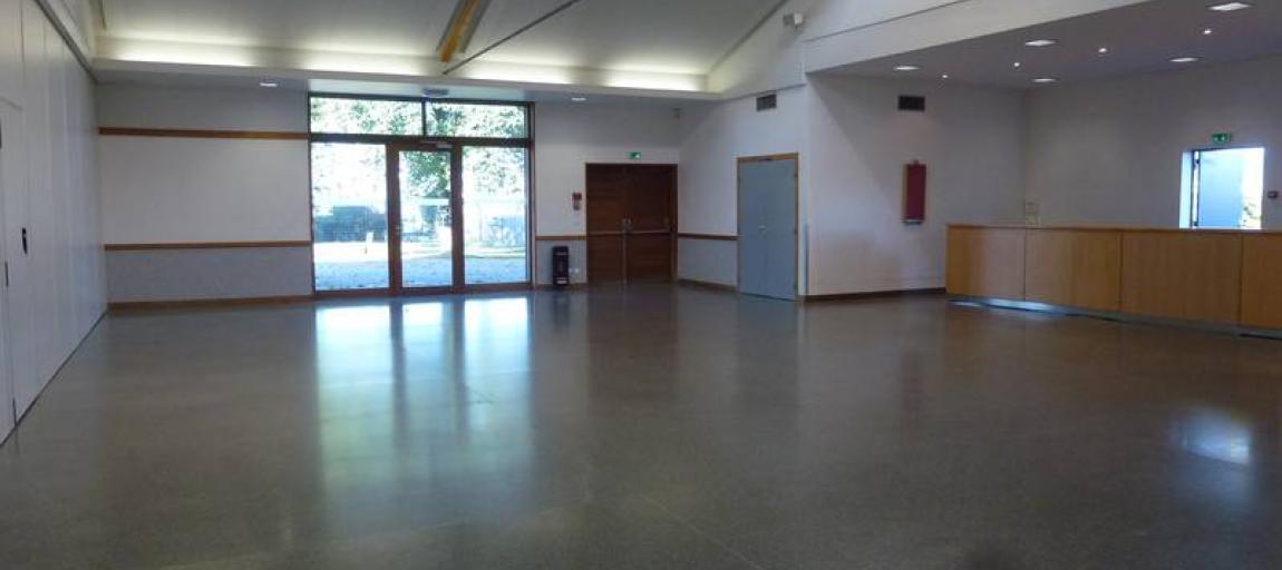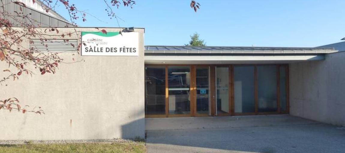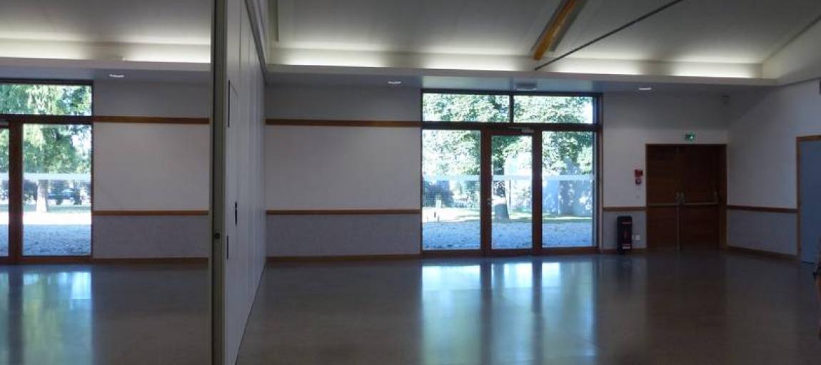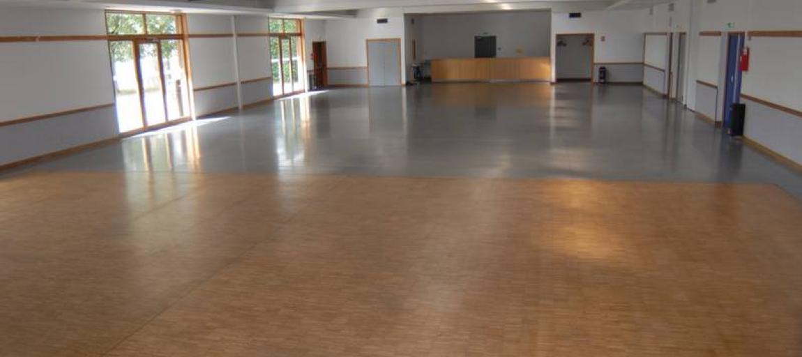 La Salle des fêtes est composée :- d'un hall d'entrée (comprenant les sanitaires et un grand vestiaire),