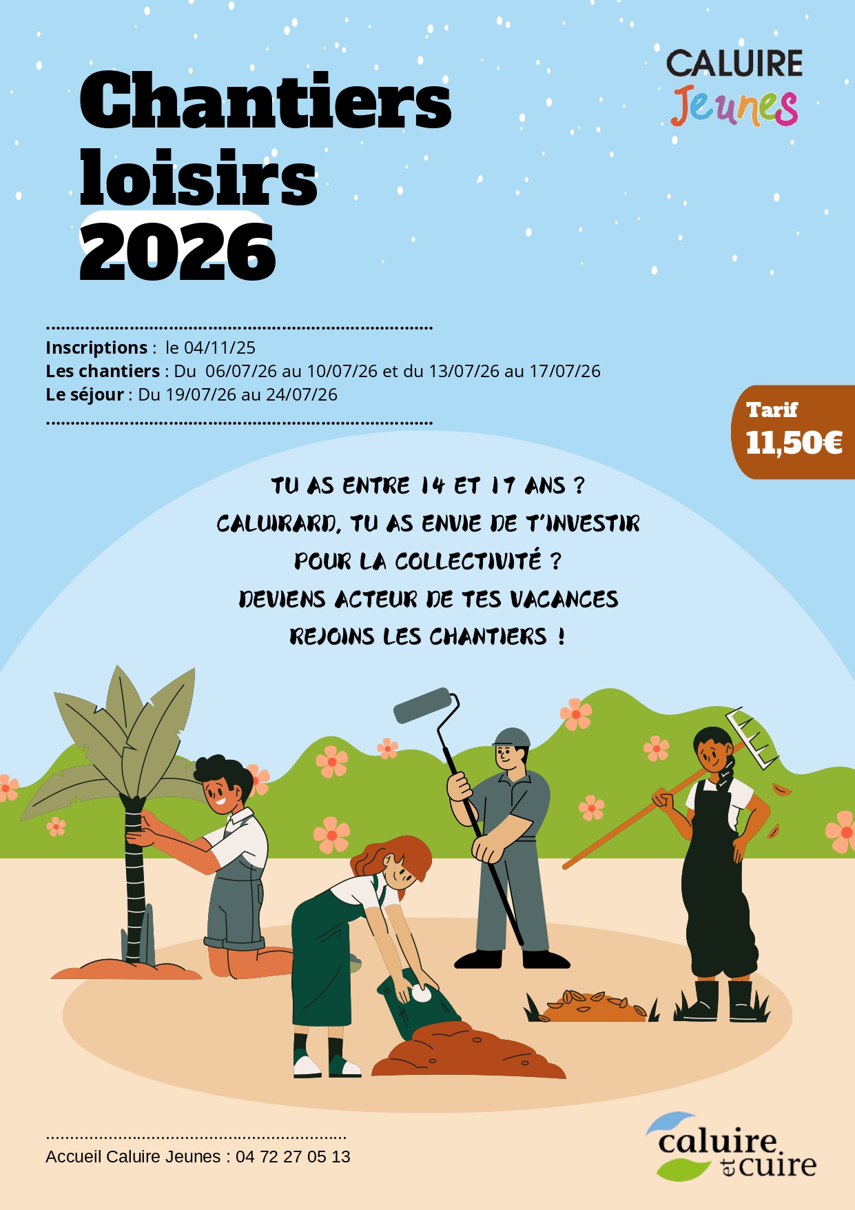 Dates des chantiers : Du lundi 6 juillet 2026 au vendredi 10 juillet 2026, et du lundi 13 juillet au vendredi 17 juillet 2026