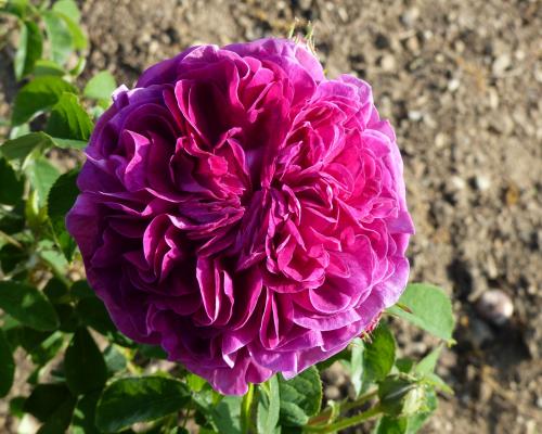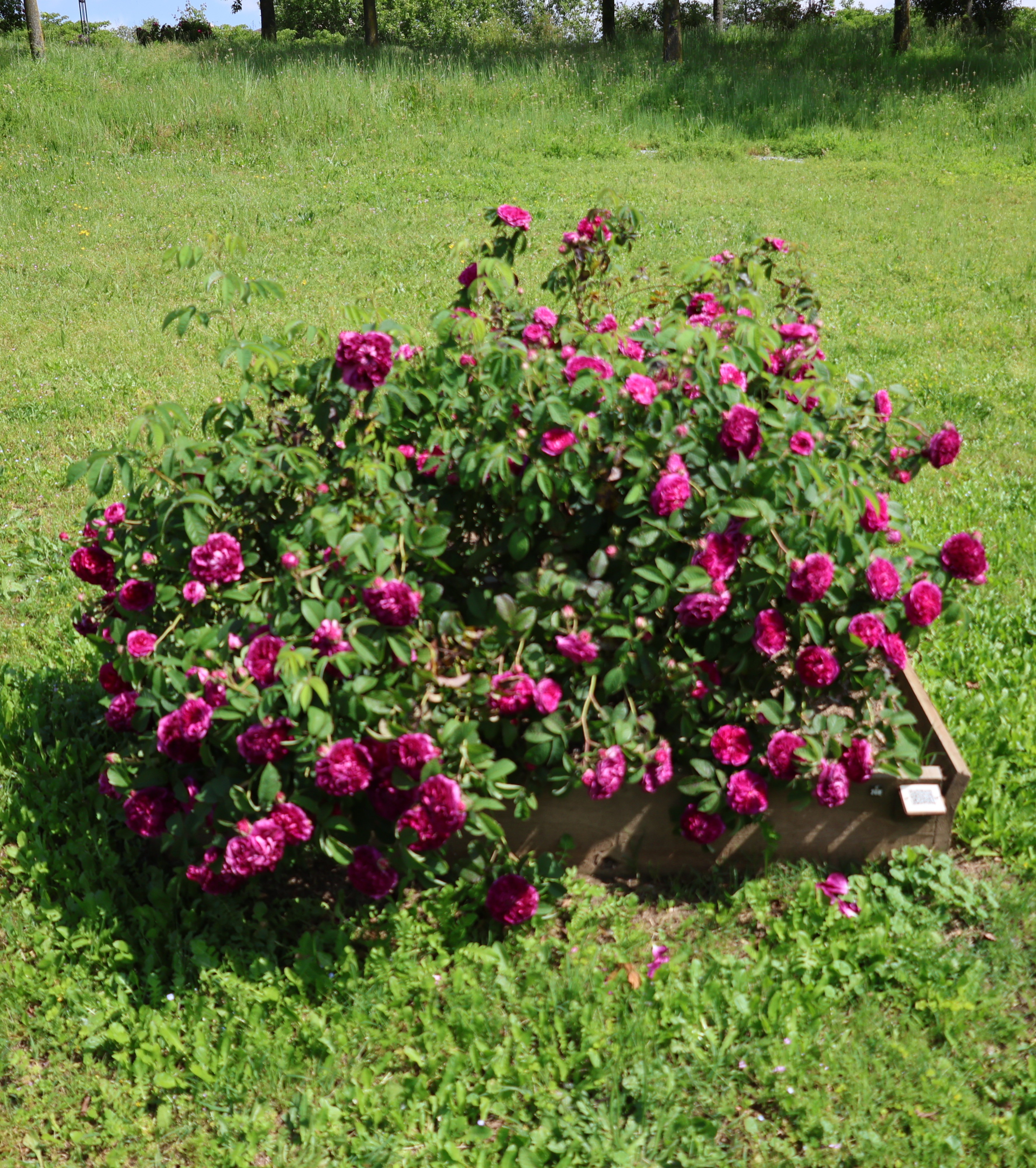 Ce rosier fait partie des nombeuses roses du groupe Gallique créées en Hollande au 18ème Siècle, et en est une des rares survivantes.