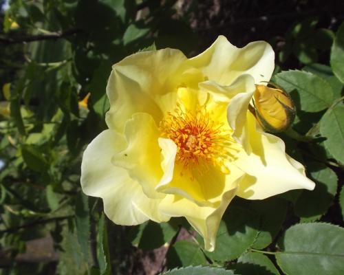 Le rosier arbustif Golden Wings possède un charme peu commun chez les rosiers cultivés. Les larges pétales jaune soufre s’ouvrent sur un beau cœur hérissé d’étamines dorées ; ce rosier "solaire" reste couvert de ses roses durant tout l’été et diffuse à son abord un très léger parfum. Par ailleurs, ses roses à corolle simple, caractéristiques des rosiers sauvages, lui confère une élégance naturelle traduite dans l'expression "Ailes d'Or".
