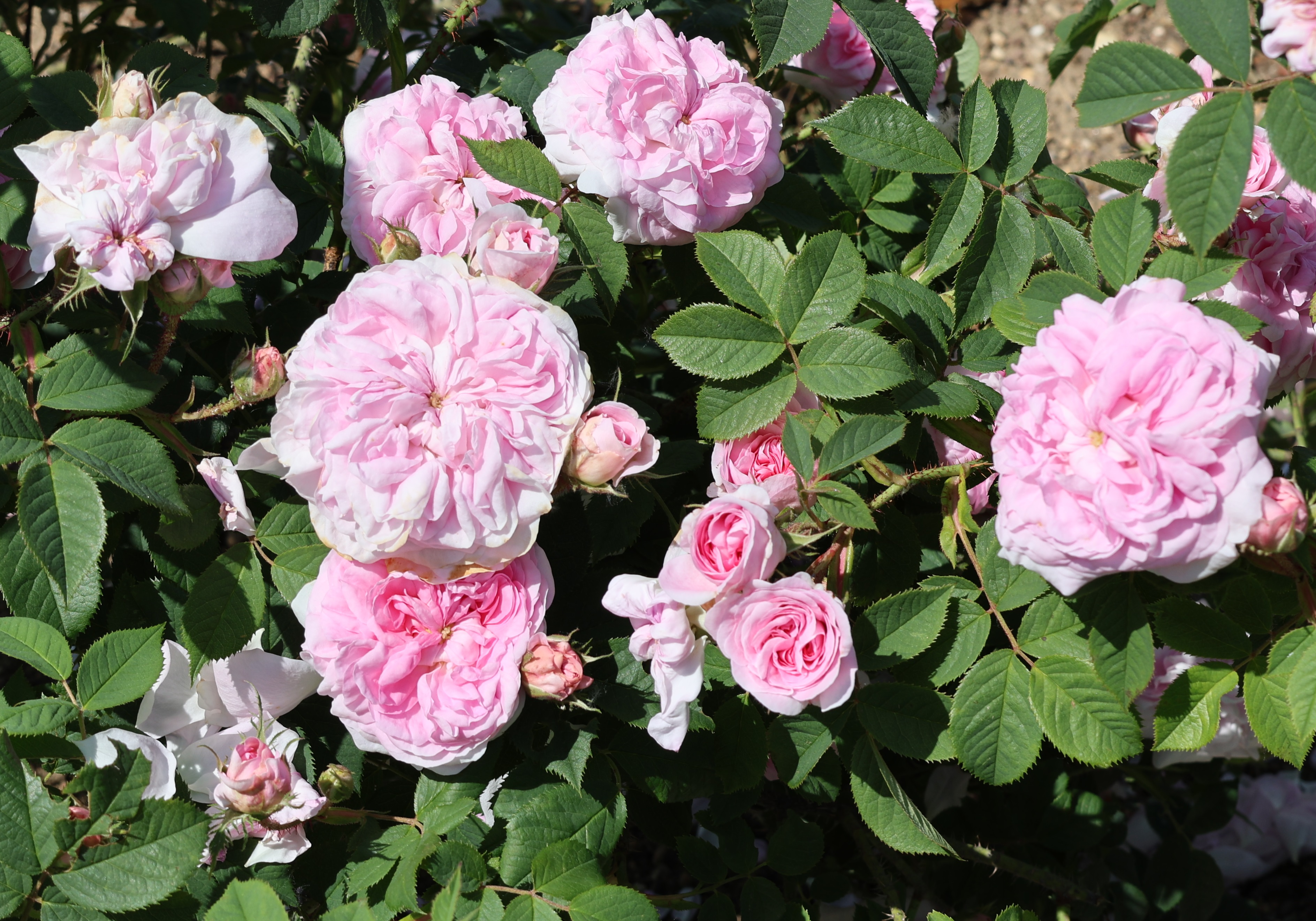 Un grand buisson rond au feuillage très dense ; Il est extrêmement rustique car il tolère des températures hivernales de -26° et résiste aux maladies du rosier. Il a une croissance vigoureuse et saine. Ses fleurs sont moyennes, très pleines, évoluent en quartiers et prennent la forme de grosses rosettes. Elles sont d'un coloris rose carné très délicat et sont très parfumées. 'Reine du Danemark' nécessite une situation ensoleillée et un sol riche et bien drainé. Cette variété est très prisée dans les pays du Nord de l'Europe