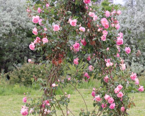 Un Rosier 'Thé' remontant avec des fleurs très doubles intensément parfumées. Un mélange de couleurs remarquable. Les fleurs apparaissent en abondance en juin-juillet et plus modérément après. 'Souvenir de Mme. léonie' est un rosier vigoureux appréciant un emplacement abrité et chaud ; un splendide rosier.
